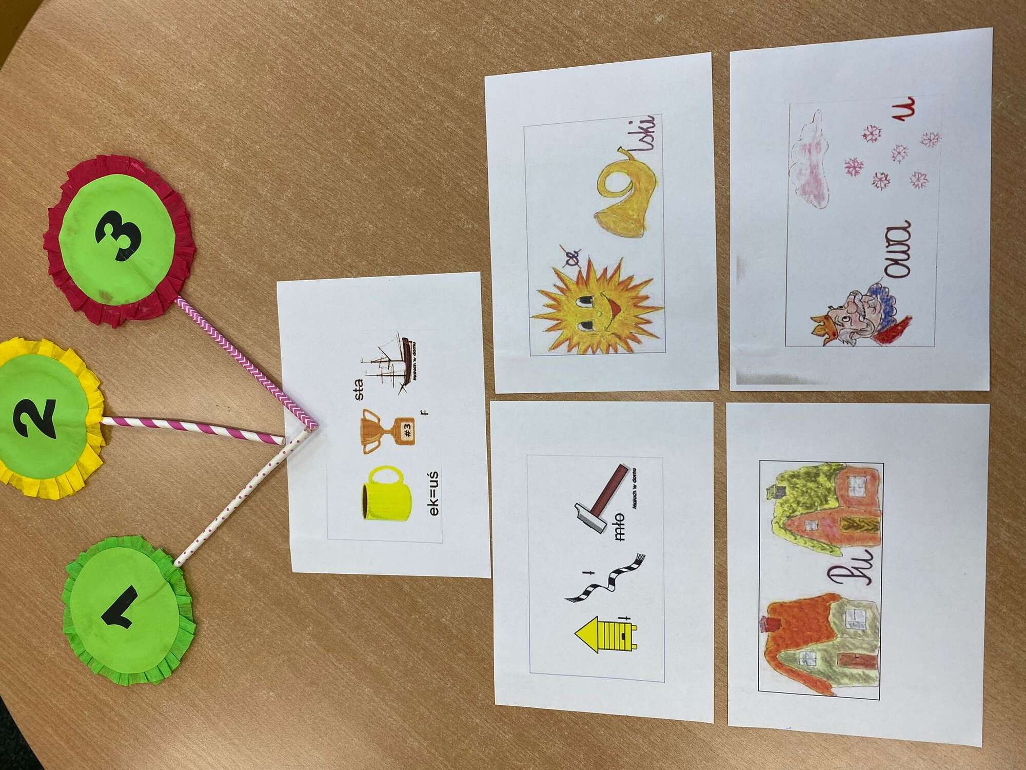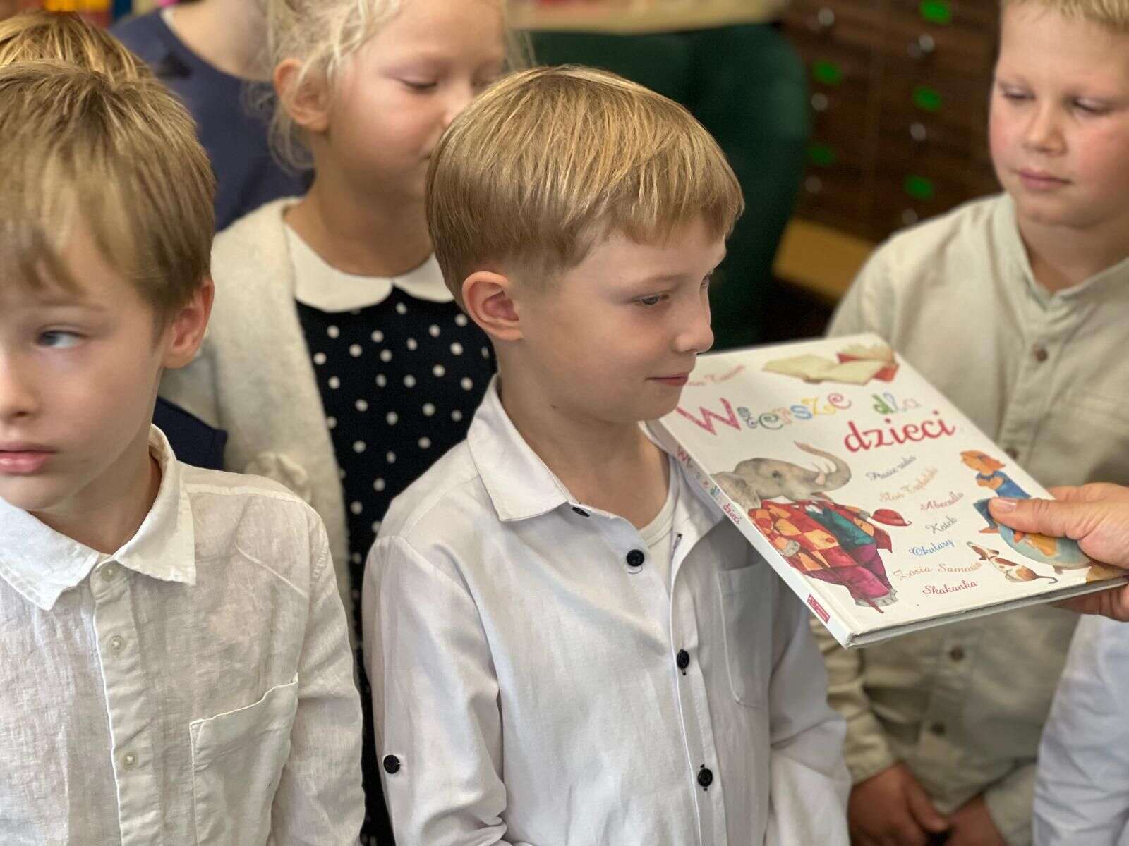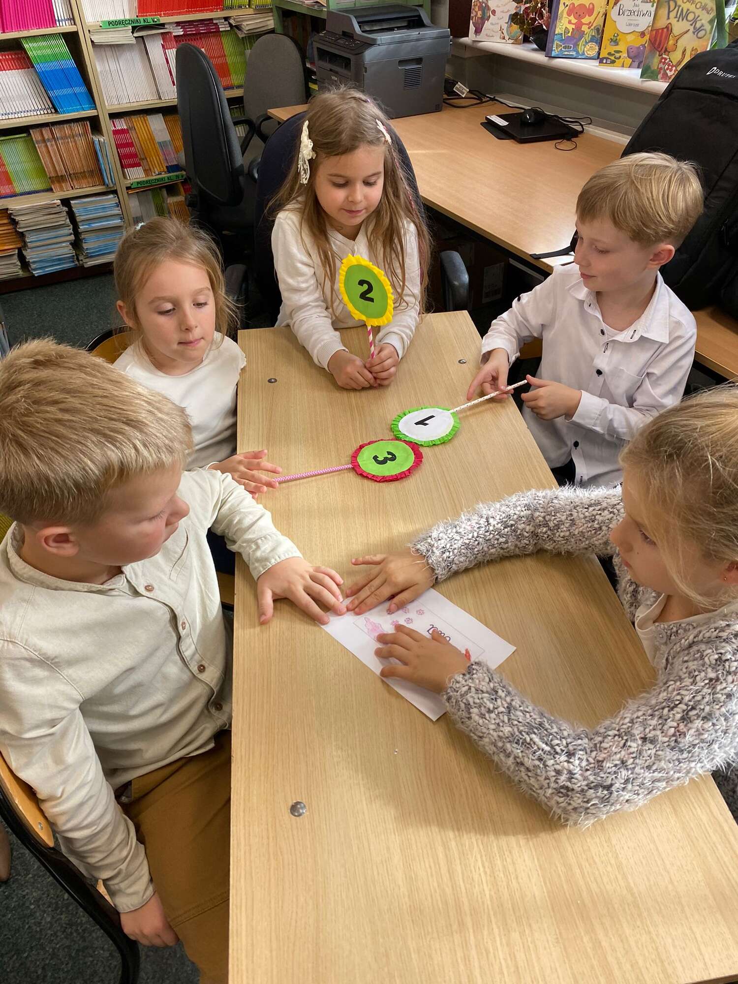 Uczniowie klasy I odgadywali także bajkowe zagadki oraz tytuły książek po okładce, rozwiązywali rebusy, które sprawdziły ich znajomość bohaterów baśni i bajek. Z zainteresowaniem obejrzeli film pt. "Jak powstaje książka?”.