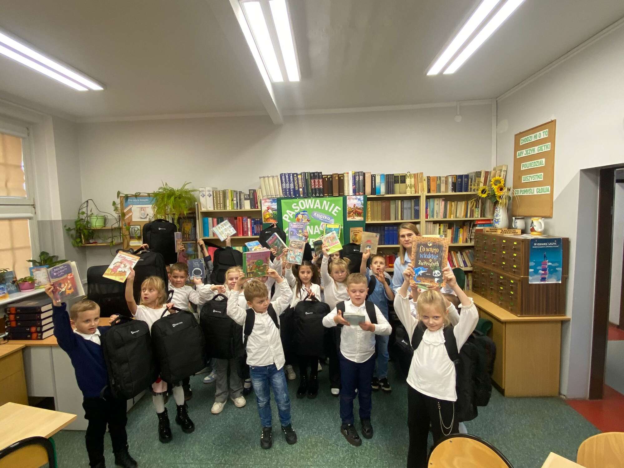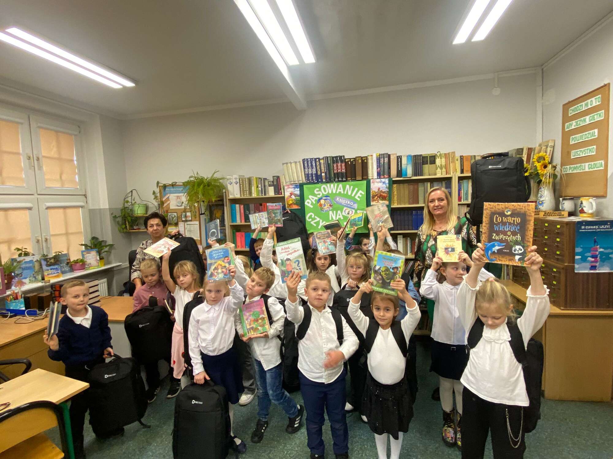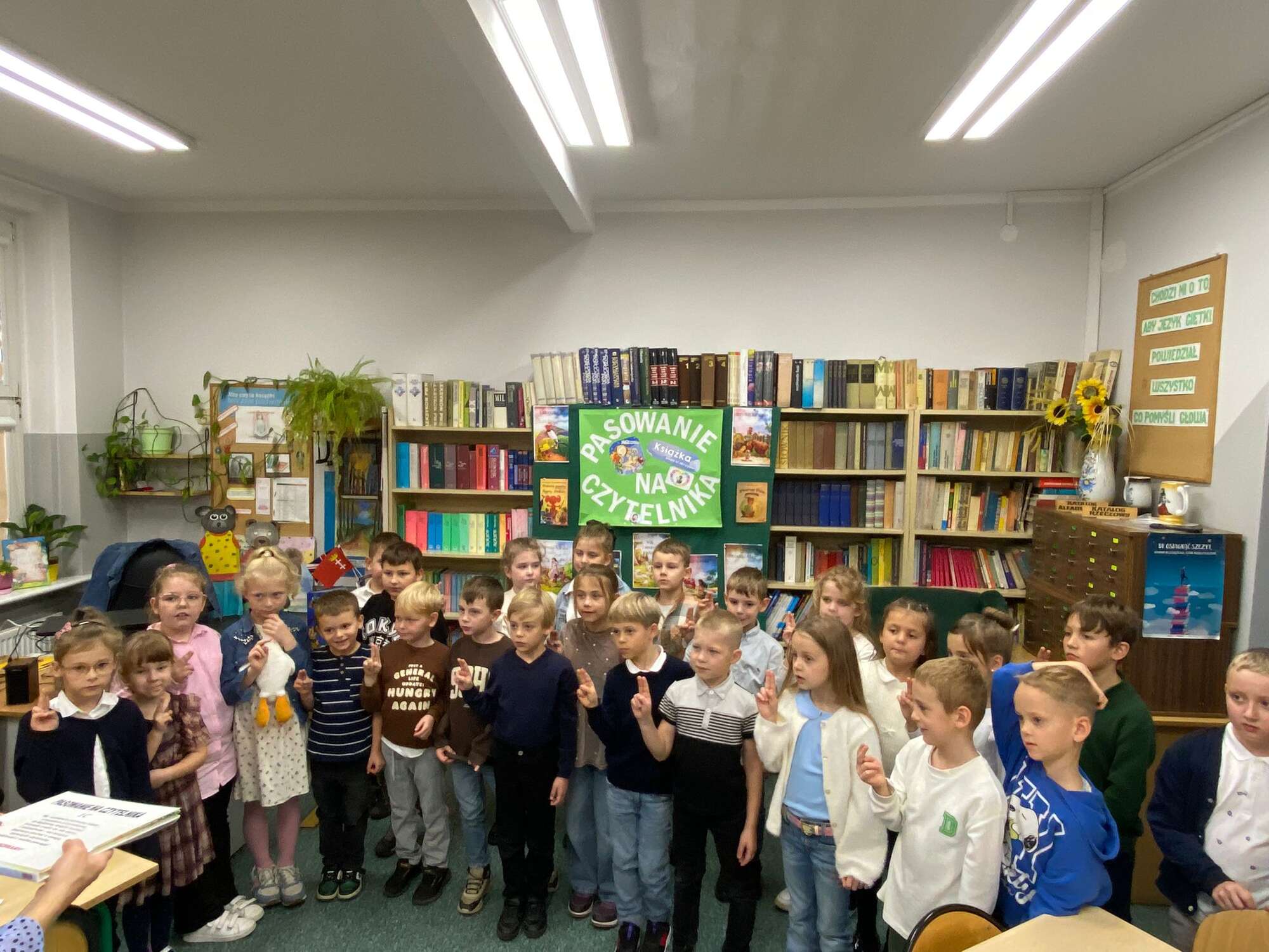 Po takim wprowadzeniu przyszli czytelnicy złożyli uroczyste przyrzeczenie, że zawsze będą książki kochać i szanować. Po pasowaniu każdy uczeń samodzielnie wypożyczył książkę i otrzymał na pamiątkę plecak z wyposażeniem od FIRMY DRUTEX.