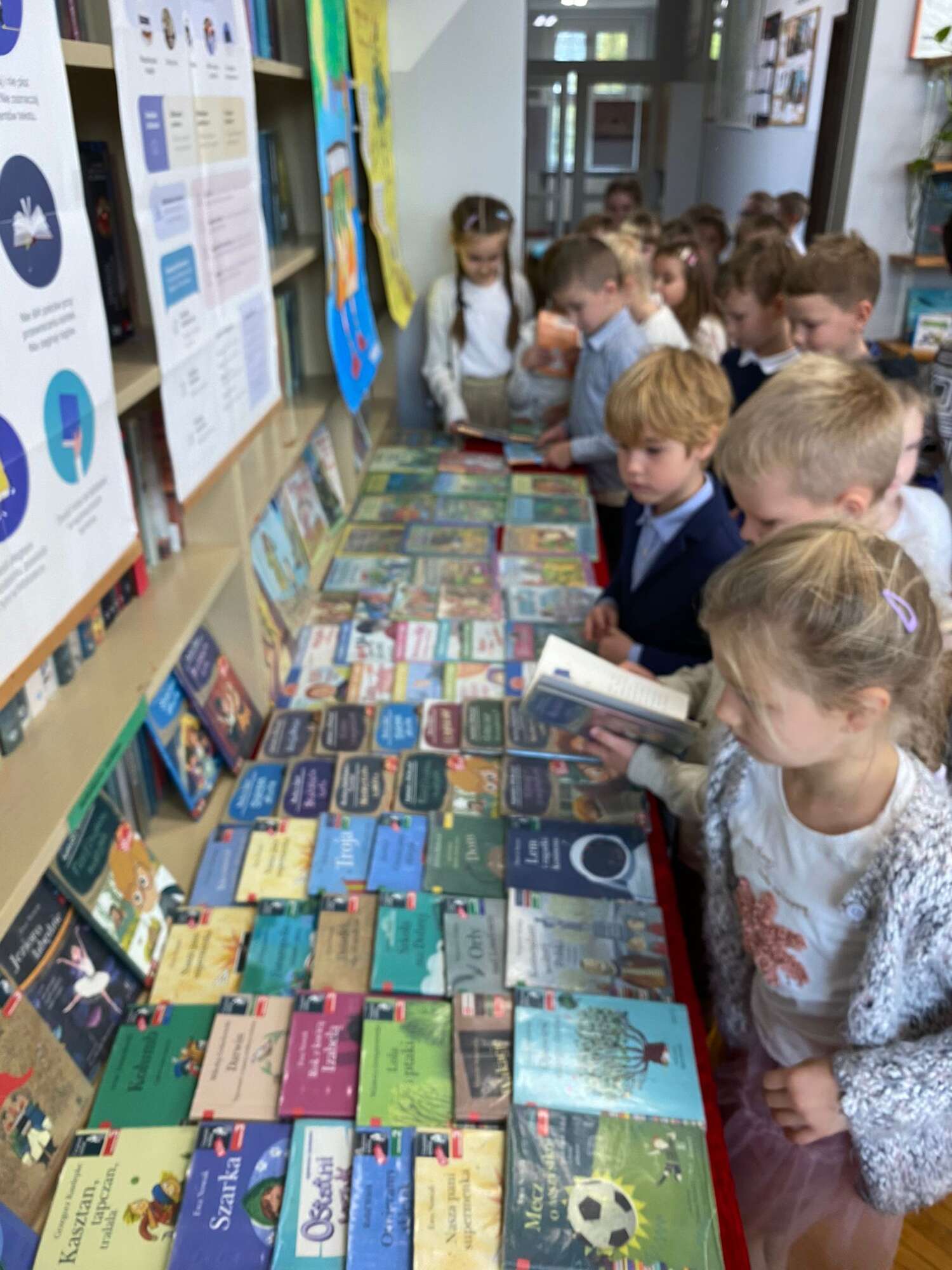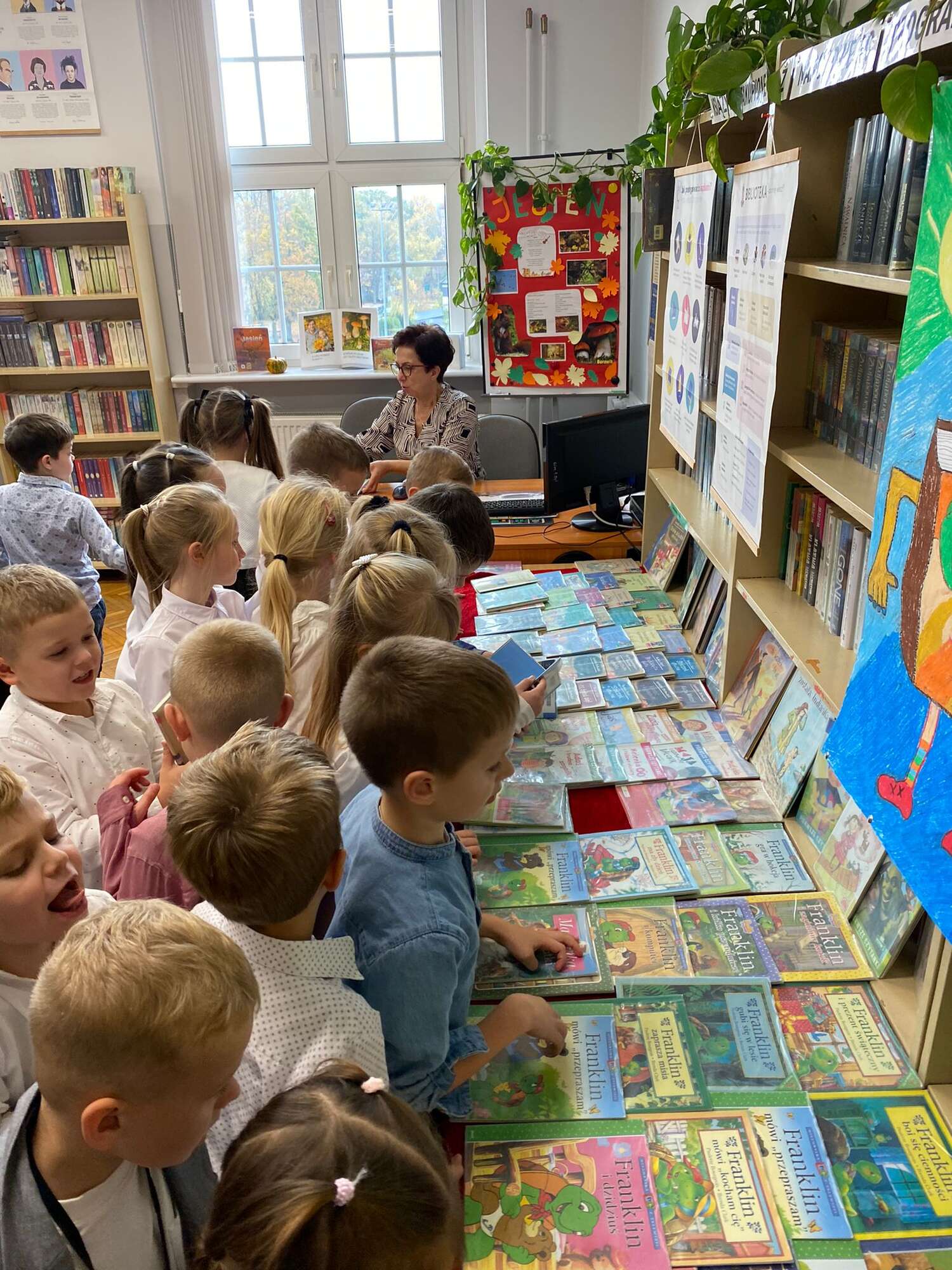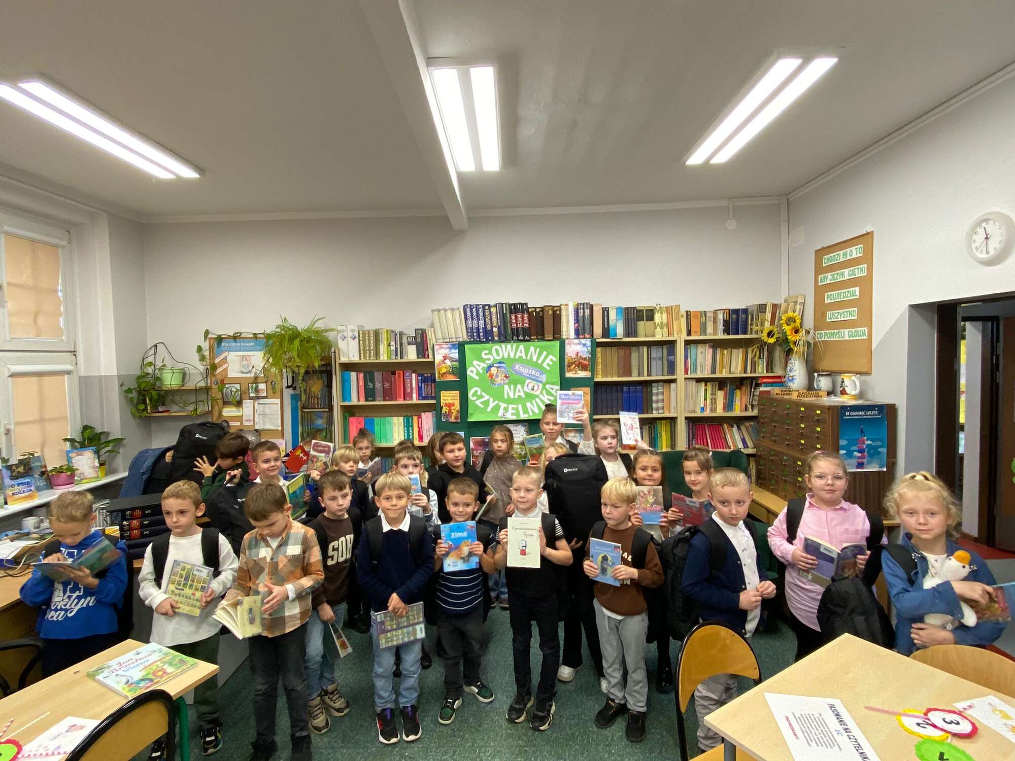 W dniach 22-24 października 2025r. w Bibliotece Szkoły Podstawowej nr 1 w Bytowie odbyło się "Pasowanie na czytelnika” uczniów klas: Ia, Ib, Ic,1d, czyli oficjalne przyjęcie uczniów do grona czytelników biblioteki. W czasie tej pierwszej wizyty dzieci zapoznały się z lokalem biblioteki, księgozbiorem, regulaminem i zasadami wypożyczania. Zanim jednak uczniowie złożyli przyrzeczenie, dowiedzieli się, jak należy dbać o książki, czego nie wolno robić w trakcie czytania. Z zainteresowaniem oglądały książkę dla niewidomych, napisaną w języku Braille`a.