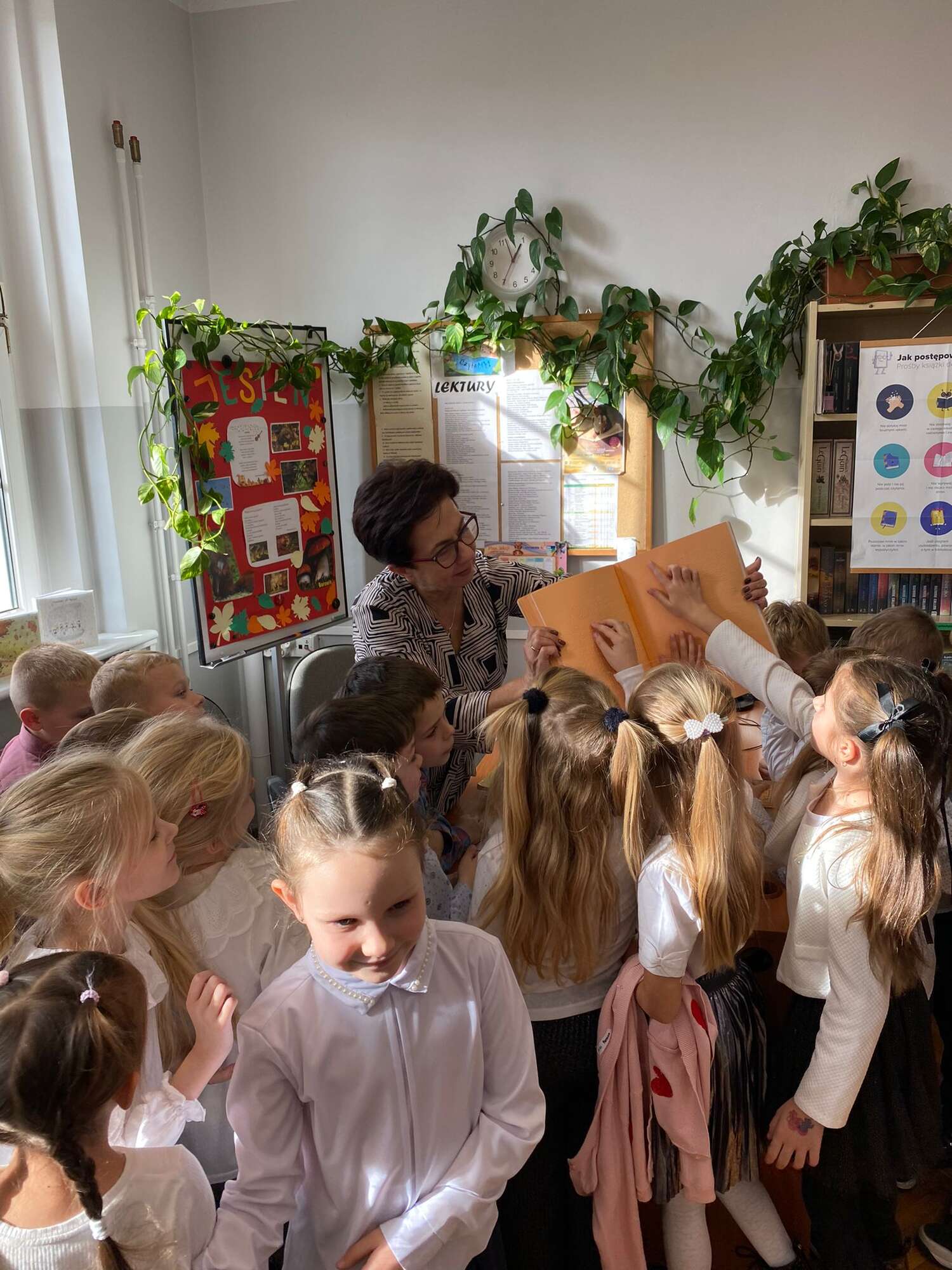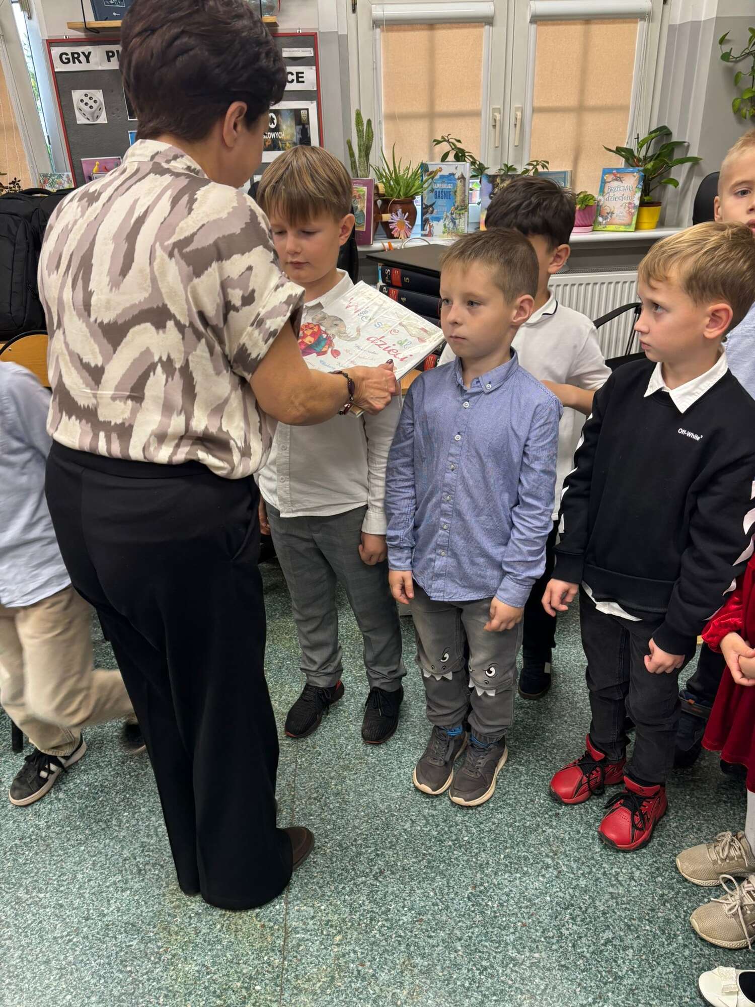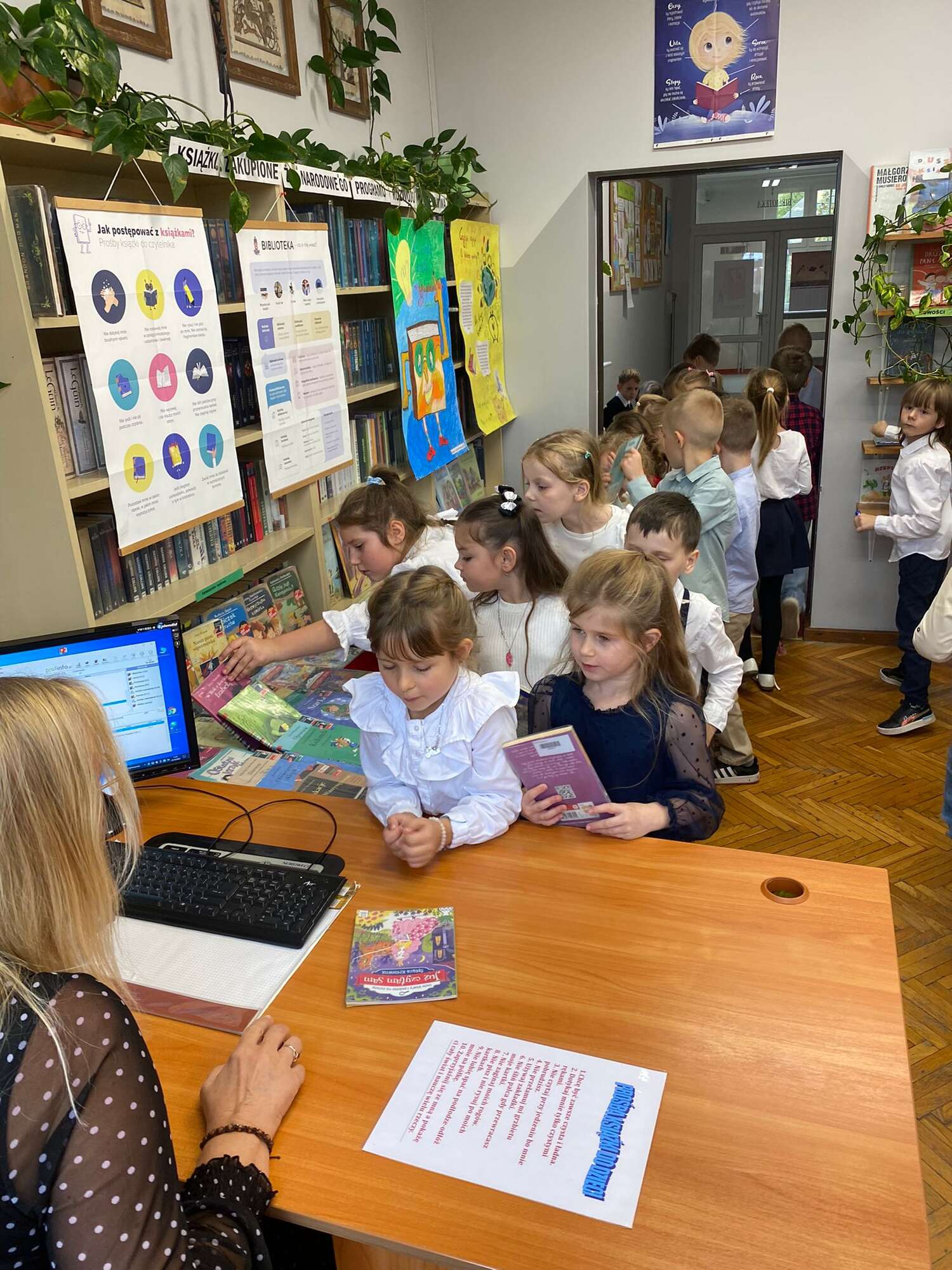W dniach 22-24 października 2025r. w Bibliotece Szkoły Podstawowej nr 1 w Bytowie odbyło się "Pasowanie na czytelnika” uczniów klas: Ia, Ib, Ic,1d, czyli oficjalne przyjęcie uczniów do grona czytelników biblioteki. W czasie tej pierwszej wizyty dzieci zapoznały się z lokalem biblioteki, księgozbiorem, regulaminem i zasadami wypożyczania. Zanim jednak uczniowie złożyli przyrzeczenie, dowiedzieli się, jak należy dbać o książki, czego nie wolno robić w trakcie czytania. Z zainteresowaniem oglądały książkę dla niewidomych, napisaną w języku Braille`a.
