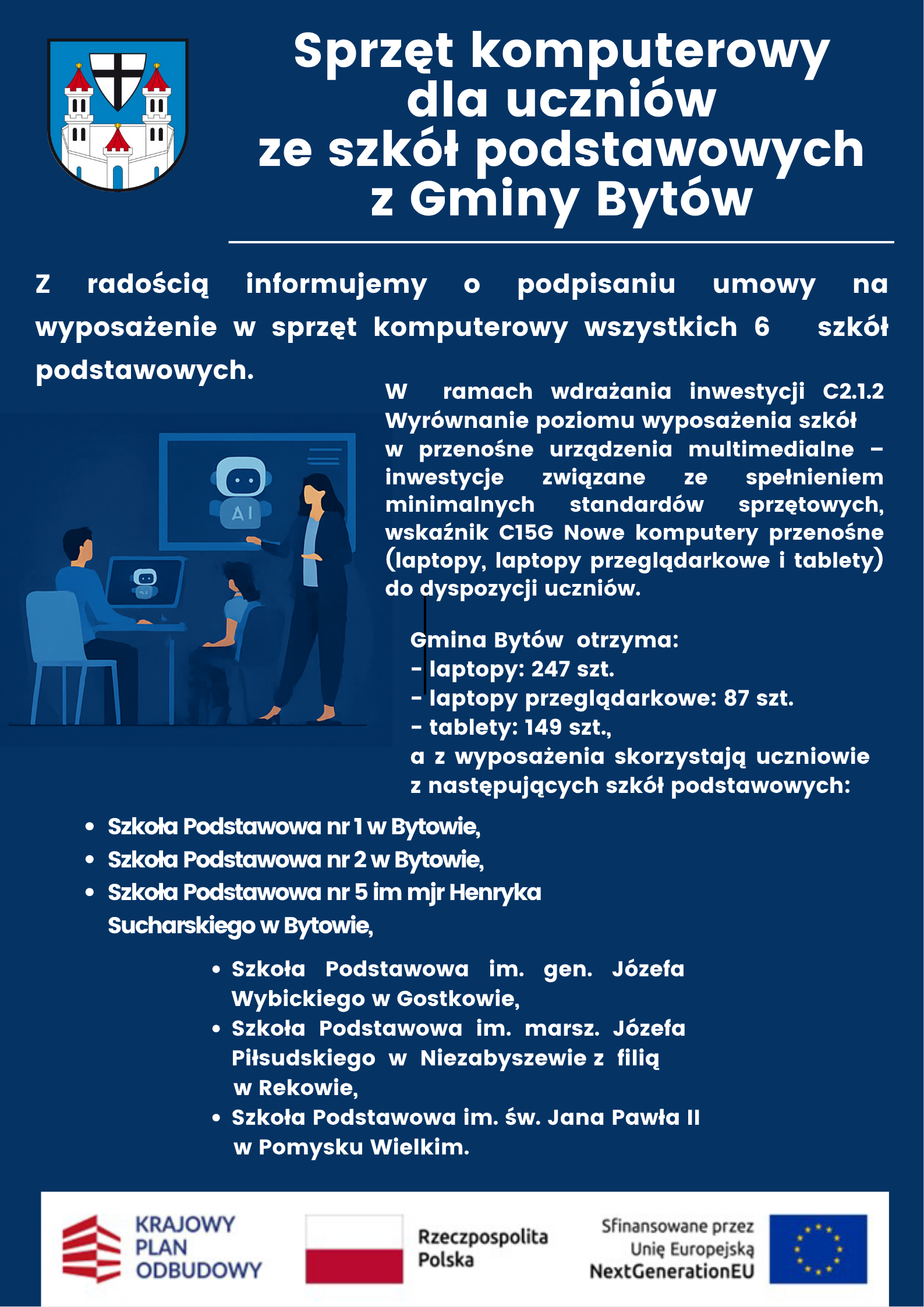 Sprzęt komputerowy dla uczniów SP Gminy Bytów w ramach KPO (Krajowy Plan Odbudowy)