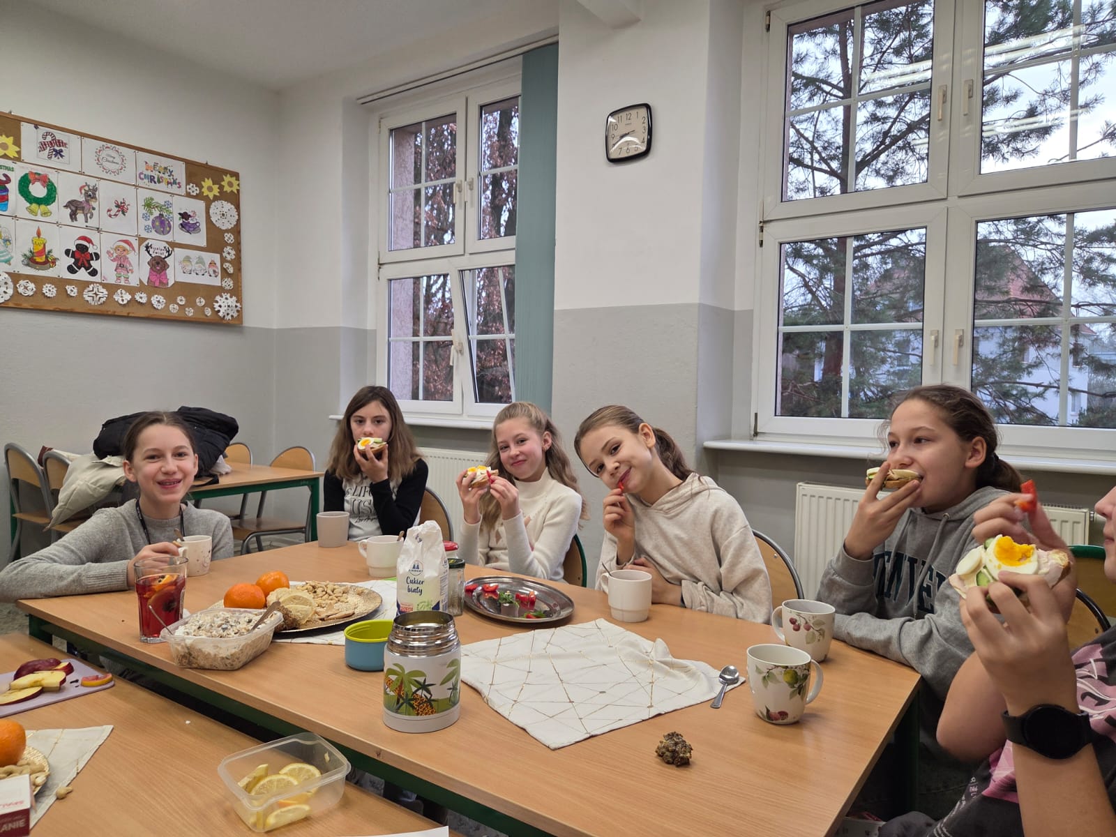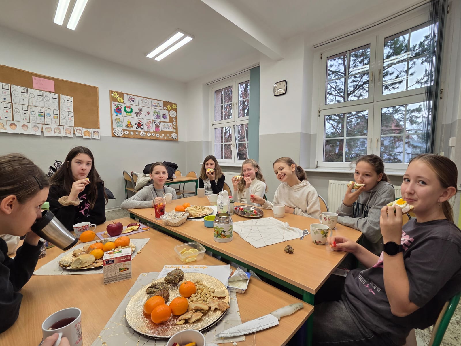 W ramach projektu „Zdrowie z klasą” uczniowie realizowali działania promujące zdrowy styl życia. Podczas „Zdrowego śniadania” dzieci przygotowywały wartościowe posiłki, poznając zasady zdrowego odżywiania.